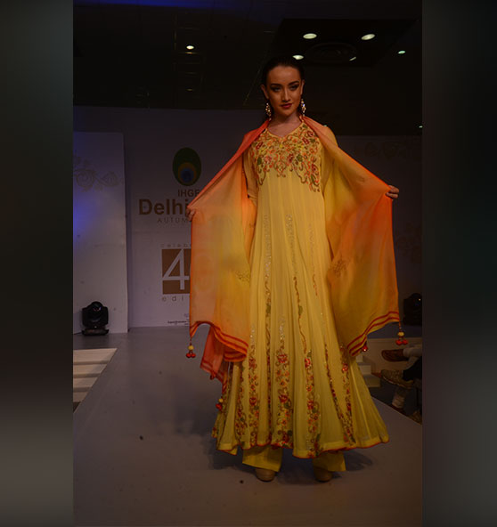 Lemon cotton lucknowi shirt in jacket style teamed up with contrast pink skirt and dupatta. Exquisite pearl work, laces and satin stripes enhance the outfit with different elements. #semiformal #cotton #skirt #lucknowi